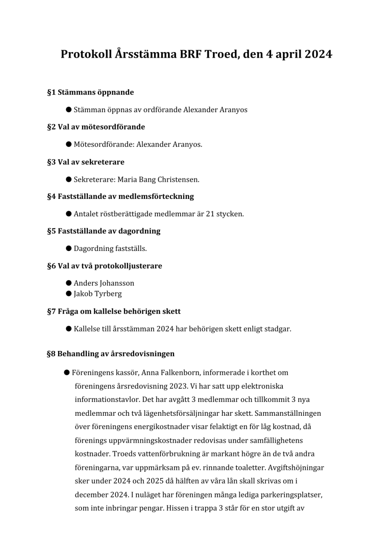 Protokoll Årsstämma 2024 – Justerat, godkänt och arkiverat