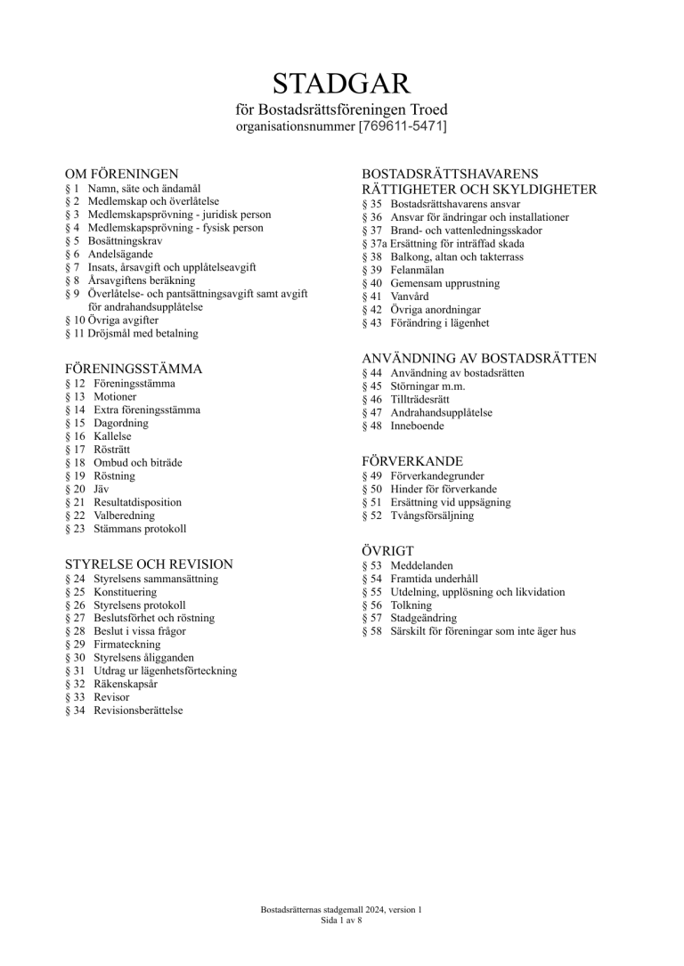 Här kan du ladda ner viktiga dokument från vår förening. Vid frågor kontakta: troedbrf@gmail.com