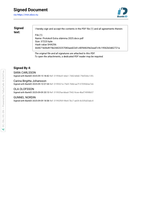 Protokoll Extra Årsstämma 2025– Justerat, godkänt och arkiverat