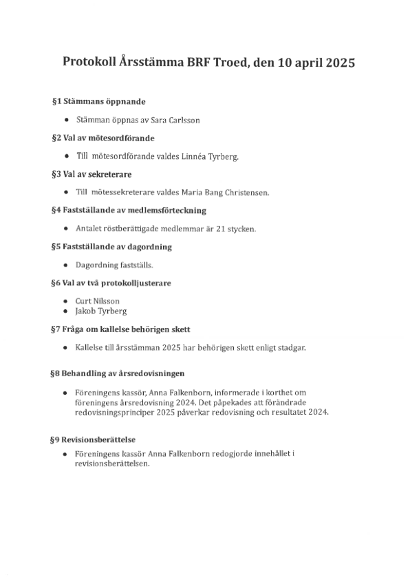 Protokoll Årsstämma 2025 – Justerat, godkänt och arkiverat